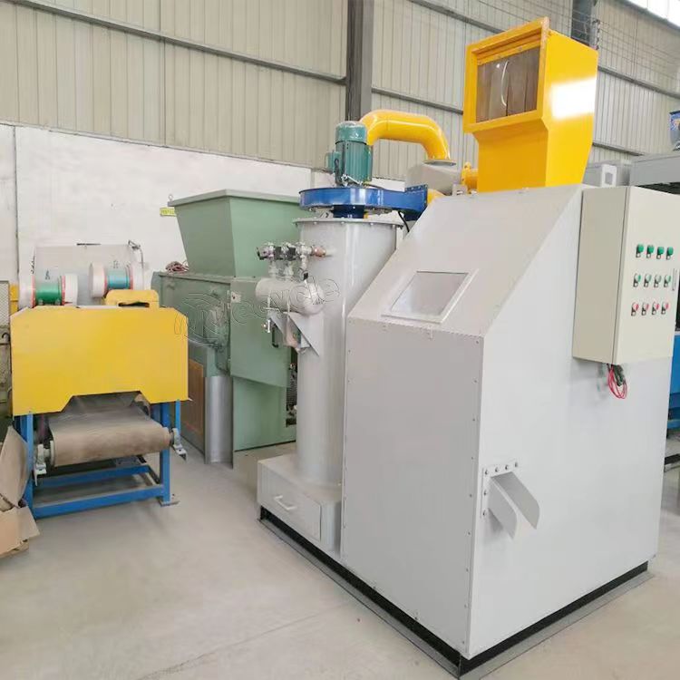 4:物料落入篩網,在篩網震動力及下方風機的吹力和篩網的傾斜度綜合作用下,密度大的銅絲涌向出銅口,塑料則經尾部流出。